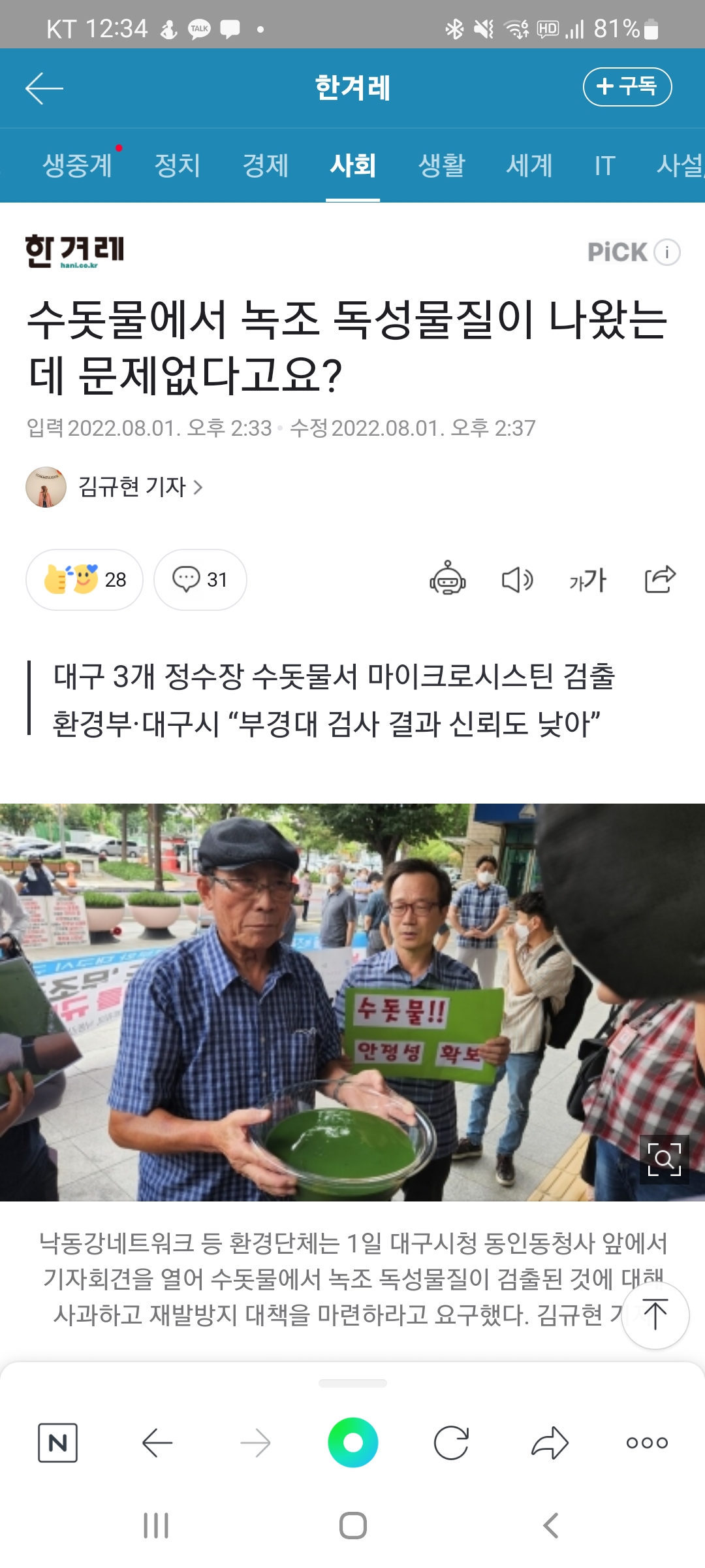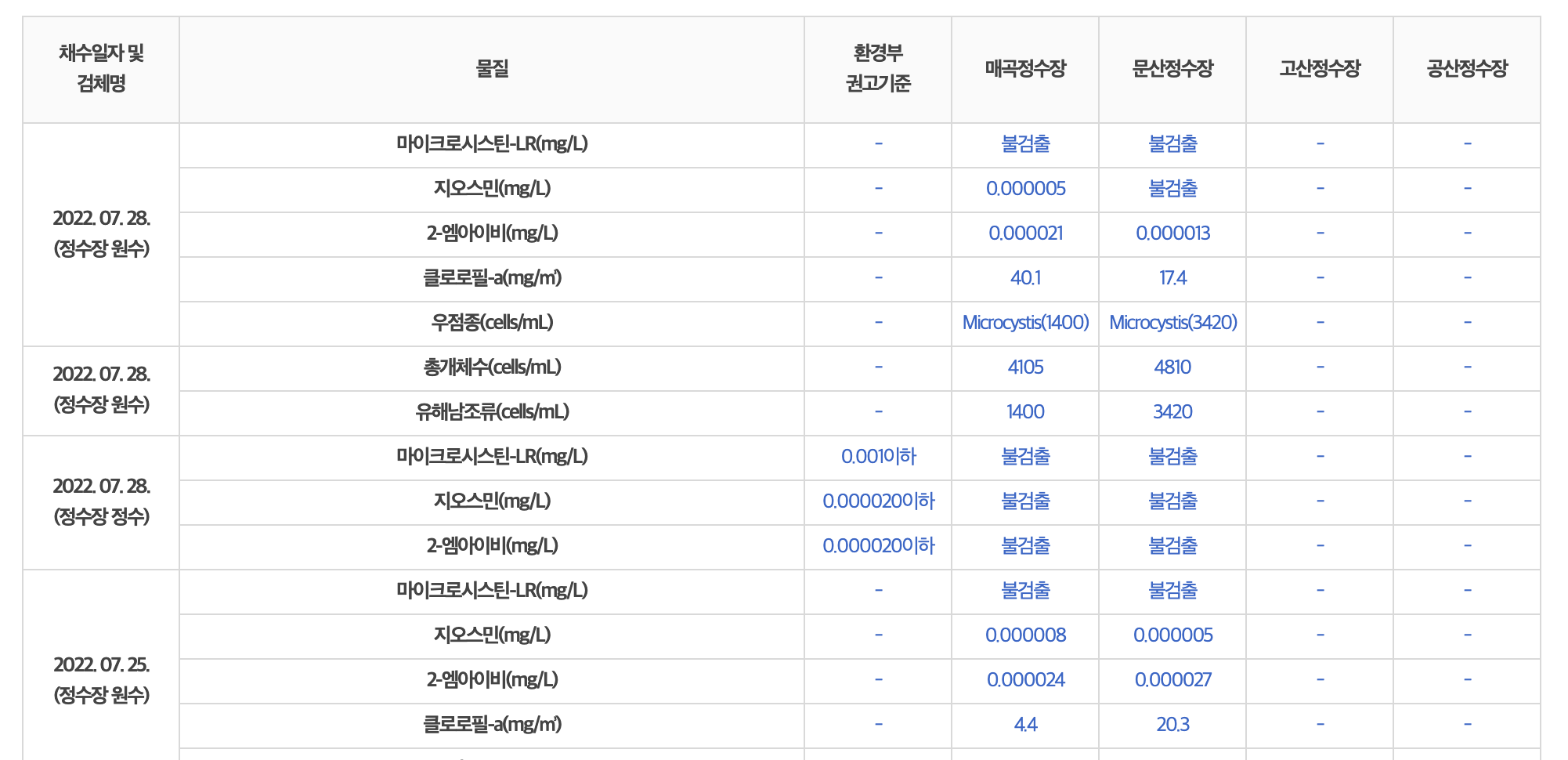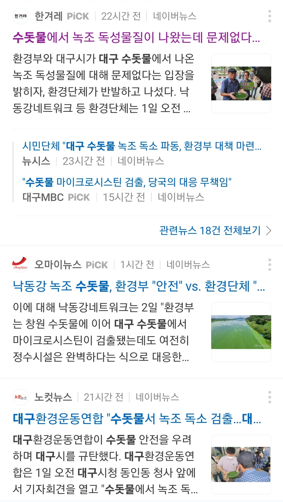 인해 강은 물론이고 바다에도 녹조가 생기면서